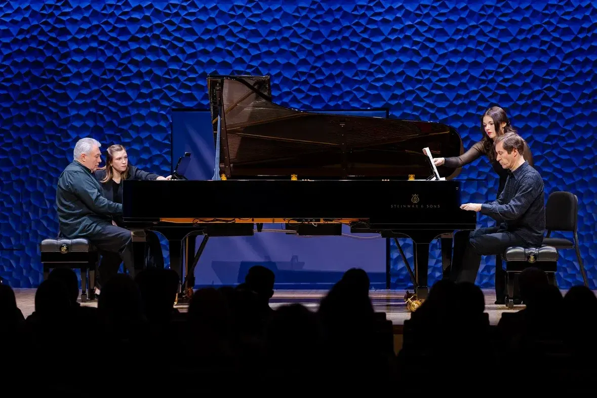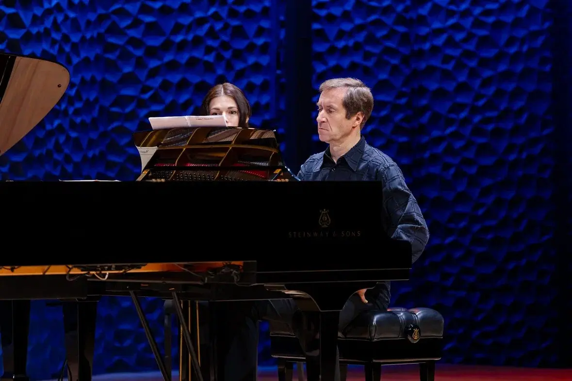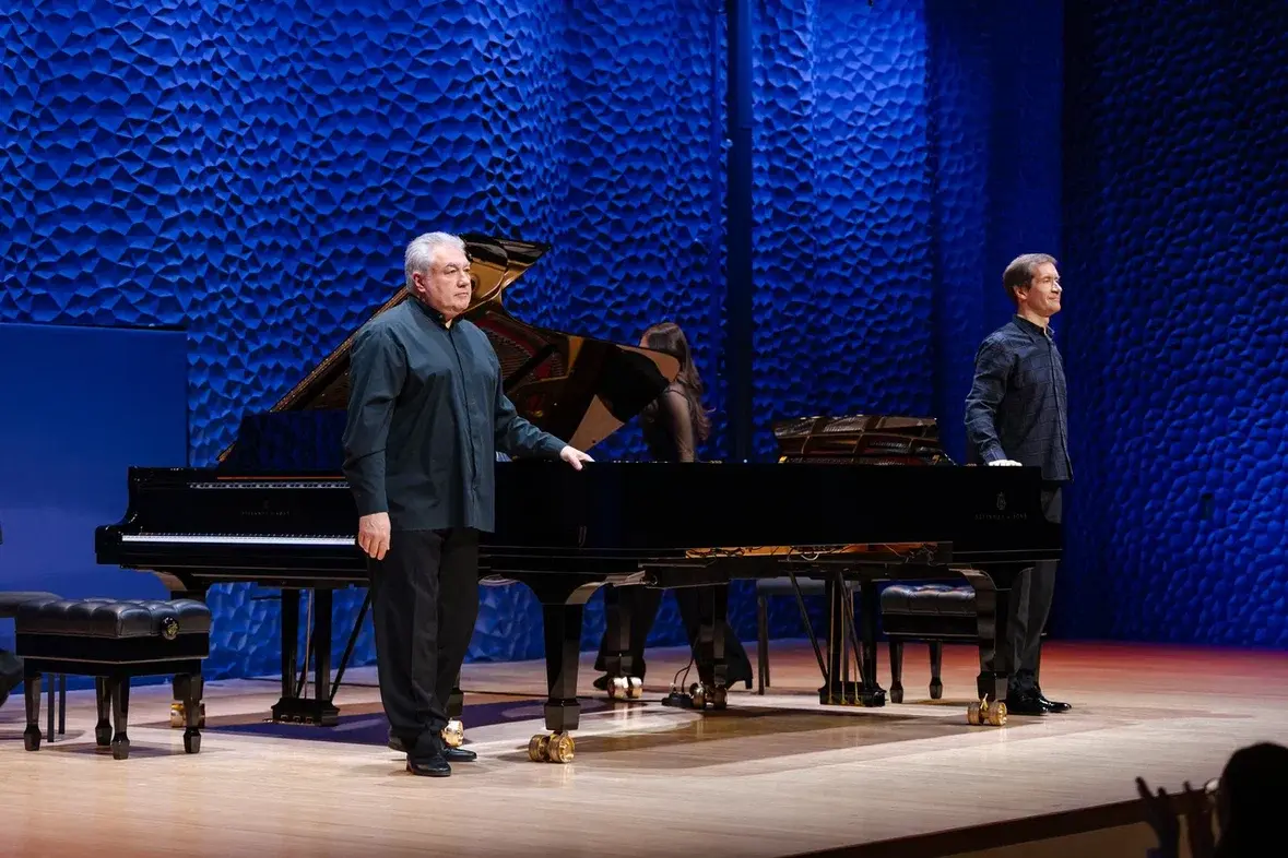 Концертная программа вновь объединила на одной сцене признанный дуэт выдающихся пианистов современности: народного артиста Николая Луганского и лауреата престижных международных конкурсов, директора Средней специальной музыкальной школы «Сириус» Вадима Руденко.
